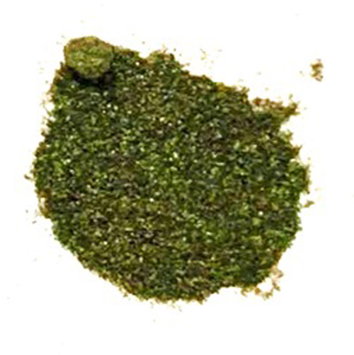 • Appearance: Dark green crystals / shining brown flakes